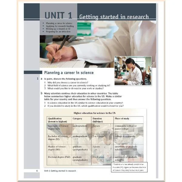 Cambridge English for Scientists розвиває комунікативні навички і спеціалізовану лексику, які дозволяють учням більш ефективно спілкуватися в робочому середовищі. Цей курс звертає особливу увагу на письмове та усне спілкування, кожен з десяти уроків заснований на реальних опублікованих дослідженнях. Це робить курс незамінним для вчених різних областей.