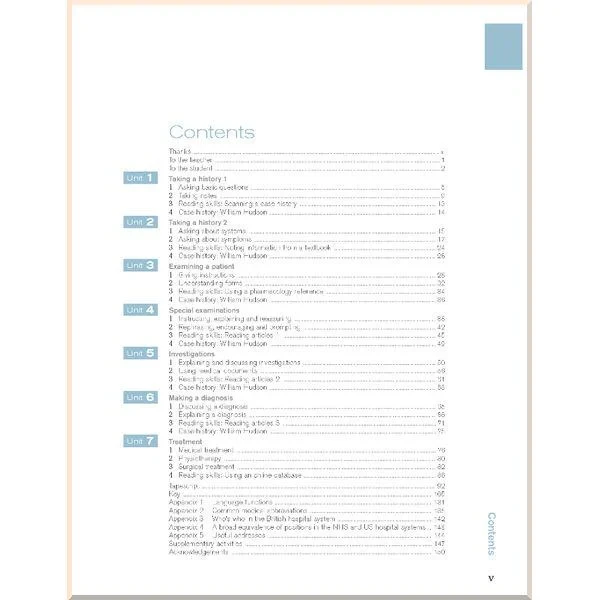 Курс розвиває всі чотири навички завдяки великій кількості завдань. Третє видання опубліковане з кольоровими ілюстраціями та оновлене з огляду на розвиток медицини та впливу інформаційних технологій. Курс не потребує спеціальних знань з боку викладача.