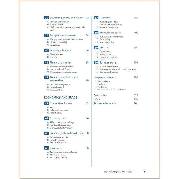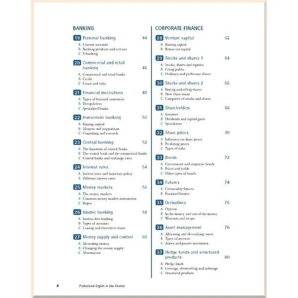 Professional English in Use Finance підходить для навчання студентів рівня В1 і вище. Підручник містить 50 модулів, які охоплюють усі аспекти фінансової лексики, від бухгалтерського обліку до кредитування, банківської справи до венчурного капіталу та багатьох інших галузей, що включають фінансові ідіоми та метафори. Підручник може бути використаний як посібник при самостійному навчанні, так і при роботі з групою студентів і є обов’язковим для вчителів і студентів, яким необхідно використовувати англійську у фінансовій сфері.