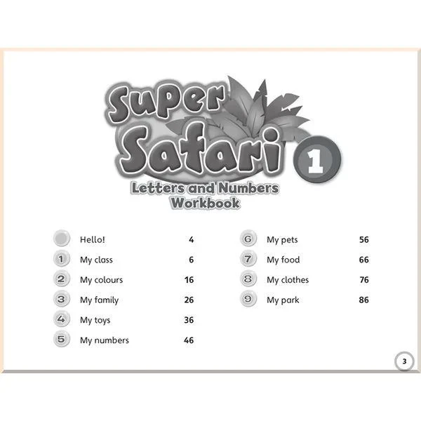 Робочий зошит Super Safari Letters and Numbers Workbook надає ще більше цікавих практичних завдань, які допоможуть у вивченні букв і чисел.