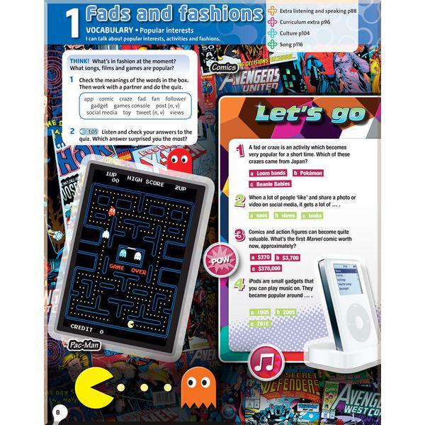 Вісім секцій «Перевірка» та вісім секцій «Завдання та ігри» пропонують перевірити накопичені під час навчання знання