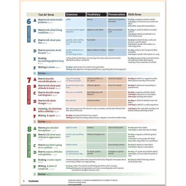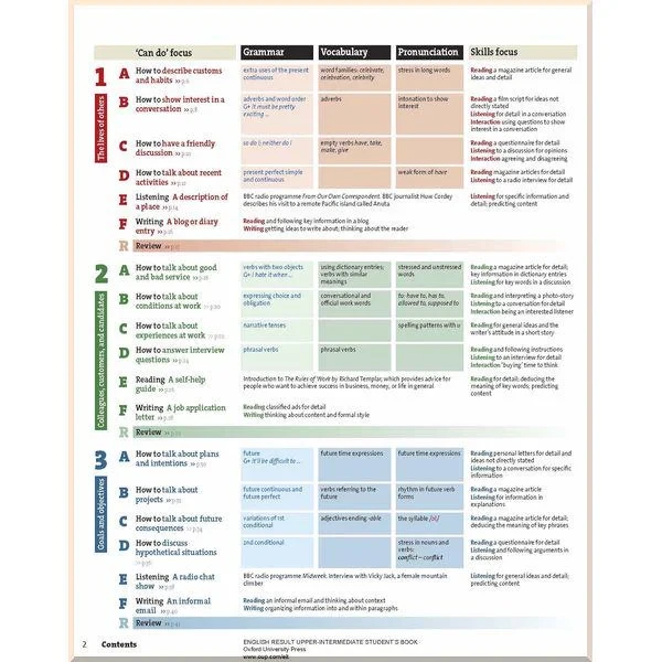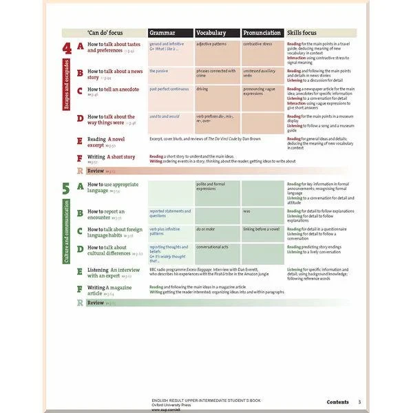 На кожен урок курсу відведено по дві сторінки. Цей свіжий формат навчання легко здатний зацікавити учнів. На лівій сторінці уроку розташовується текст у кольоровий обробці, який одразу привертає увагу, а на правій сторінці — вправи. Мета кожного уроку розрахована на практичний результат. Разом усі елементи забезпечують студентам приголомшливий досвід, що мотивує до подальшого вивчення мови. До підручника додається DVD для роботи в класі та для самостійного навчання.