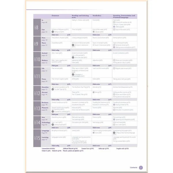 матеріал курсу зачіпає міжнаціональні та культурні аспекти, а також враховує потреби учнів спілкуватися з неносіями їх рідної мови так само, як і з носіями