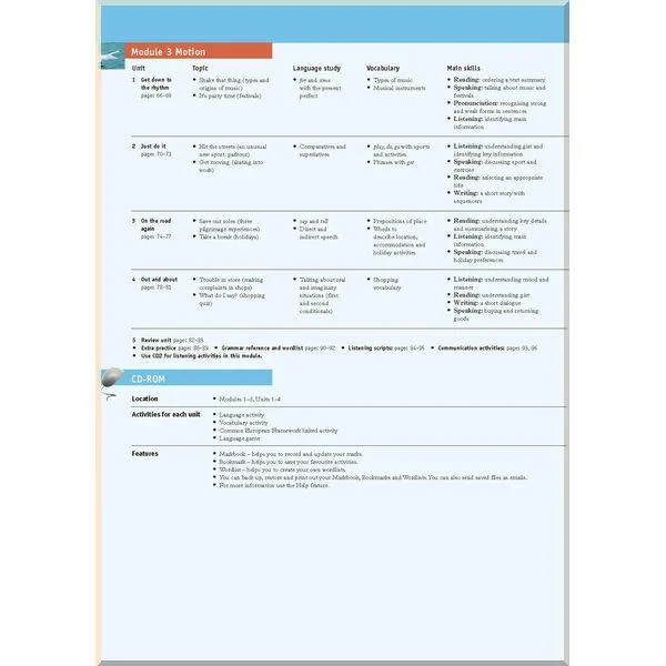 - наприкінці кожного модуля — граматичний довідник на розвороті з детальною інформацією щодо представлених у модулі аспектів граматики