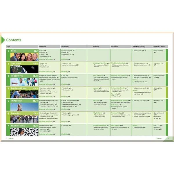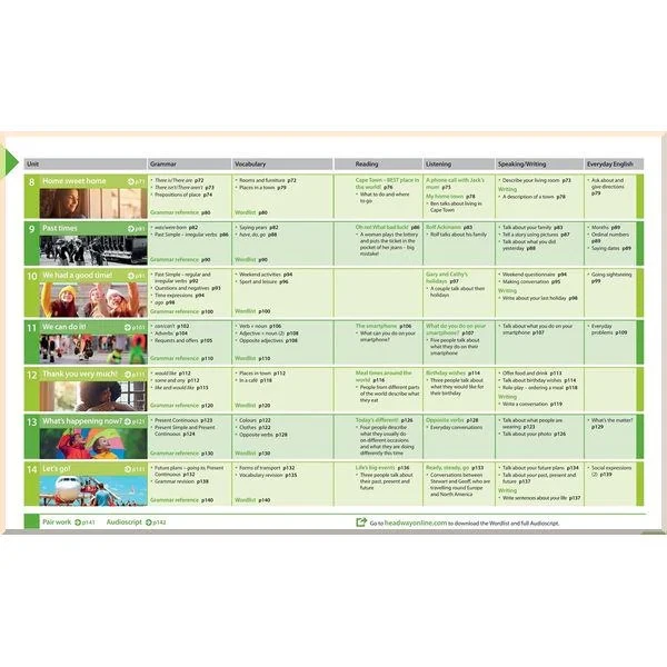 У кожному підручнику курсу представлено 14 навчальних тем, які представлені в загальновідомій структурі курсу Headway і методології інтегрування базових навичок.