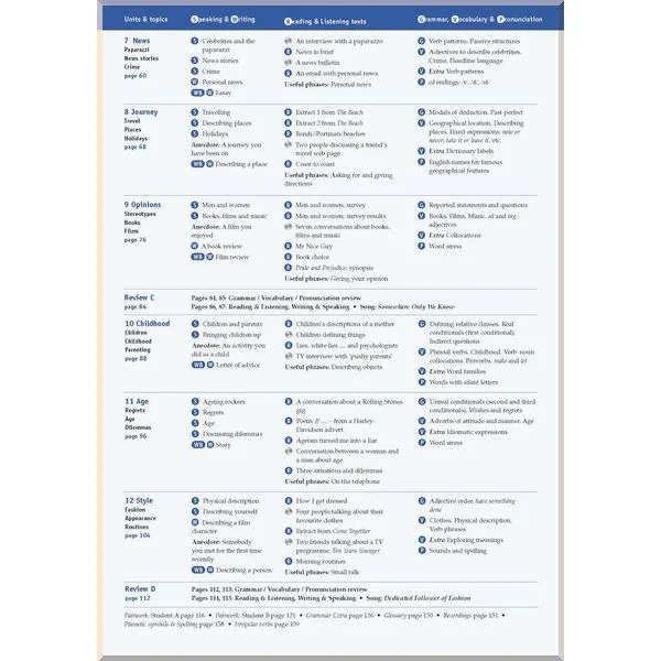 • додаткові лексичні сторінки: допомагає повторювати ключові слова з попереднього розділу і надає список слів, на який можуть спиратися учні