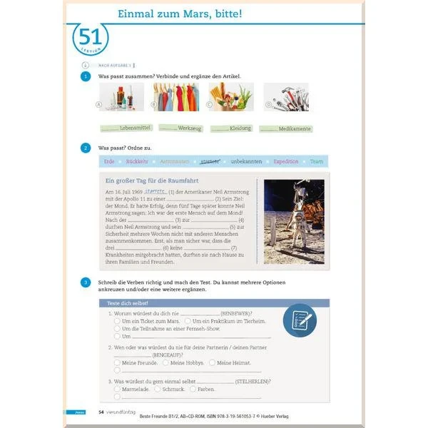 в кінці кожного модуля йдуть дві сторінки з вправами для тренування мовних навичок, а також одна сторінка для самоперевірки (у форматі затвердження «Я це можу»)