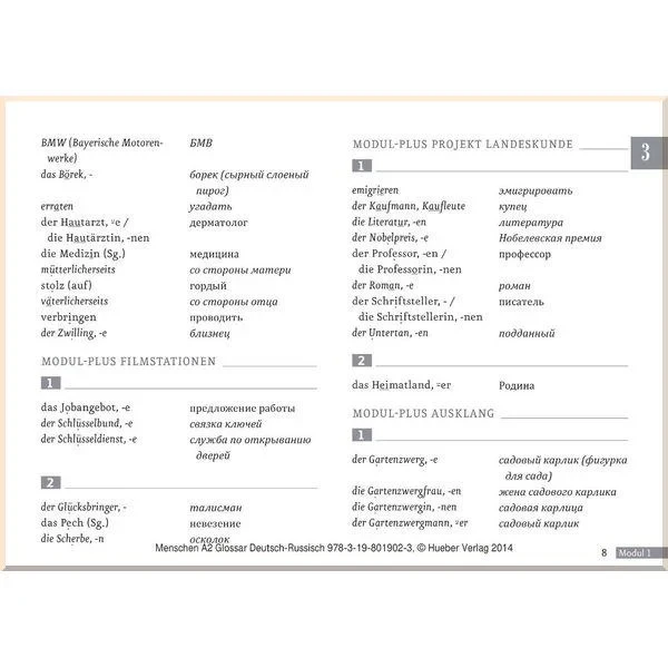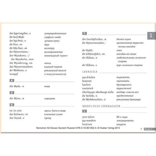 Книга Menschen A2 Glossar Deutsch-Russisch