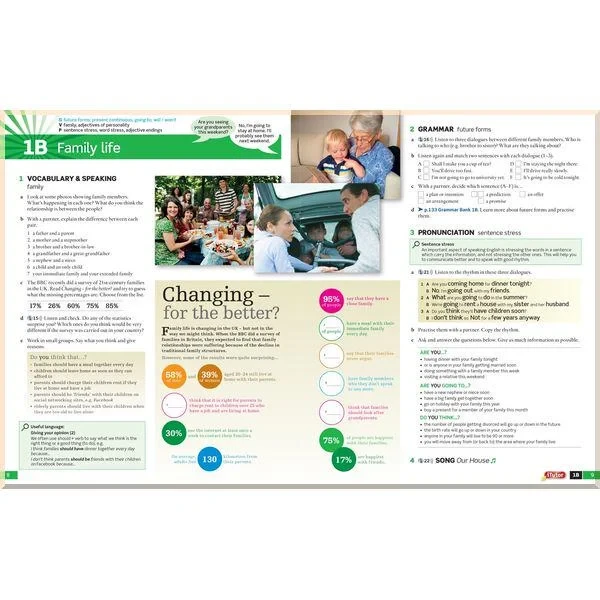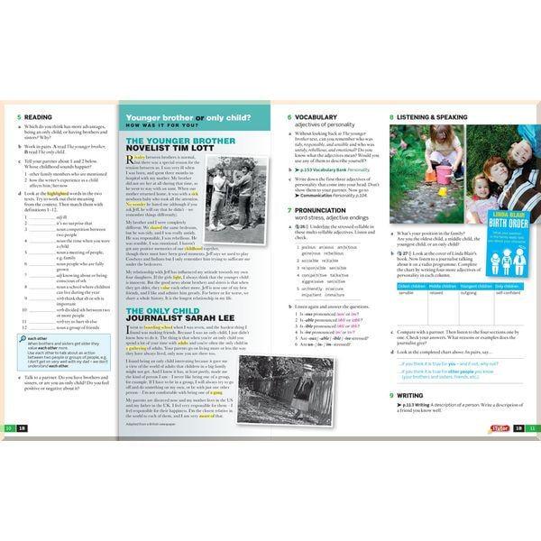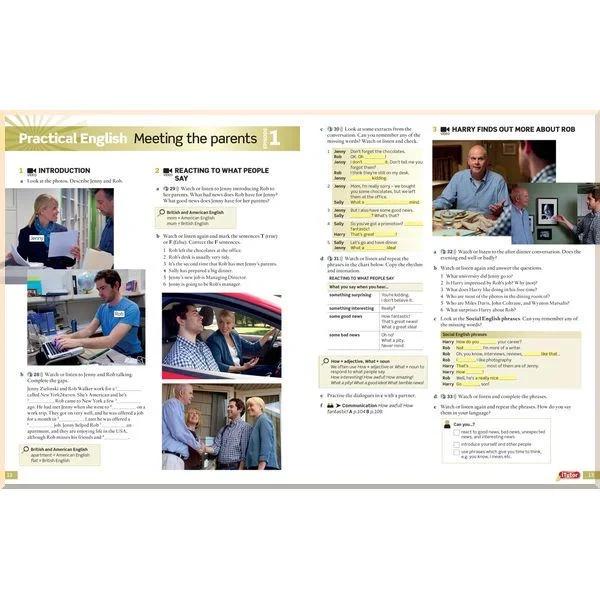• в English File представлені правила та практичні вправи з граматики, лексики й вимови поряд із аудіюванням, завданнями на розвиток навичок читання і розмови