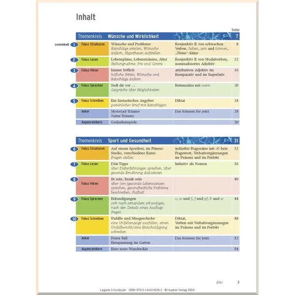 Lagune готує учнів до повсякденного спілкування в німецькомовному середовищі. Підручник пропонує так багато дивовижних, цікавих і незвичайних завдань, які хочеться скоріше виконати, що бажання вчитися з кожною новою незаповненою сторінкою лише зростає.