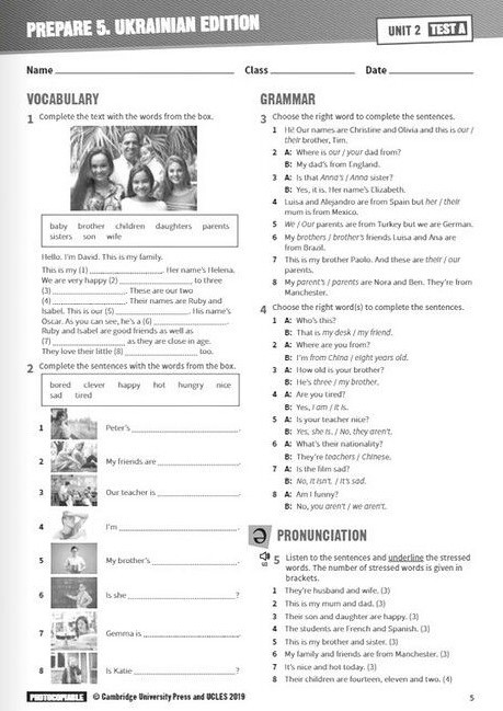 Prepare 5. Test Book – збірник тестів з англійської мови, що дає змогу регулярно проводити контроль навчальних досягнень учнів 5-х класів у процесі вивчення англійської мови. Структура кожного тесту дозволяє комплексно перевірити уміння слухати, читати, писати і говорити, а також знання з лексики і граматики.