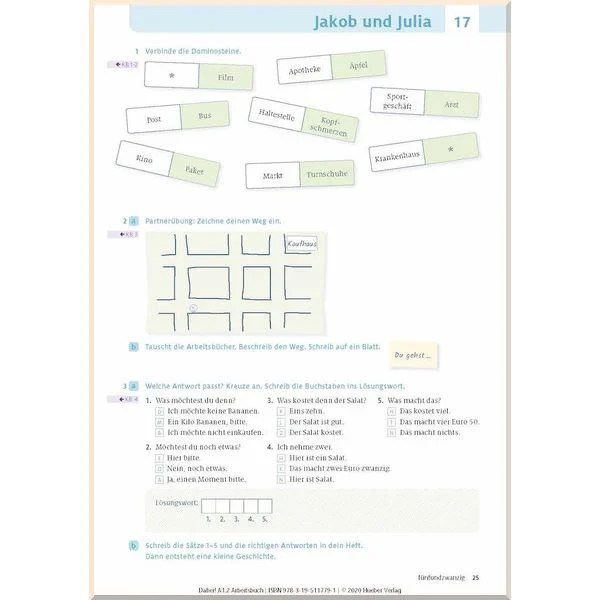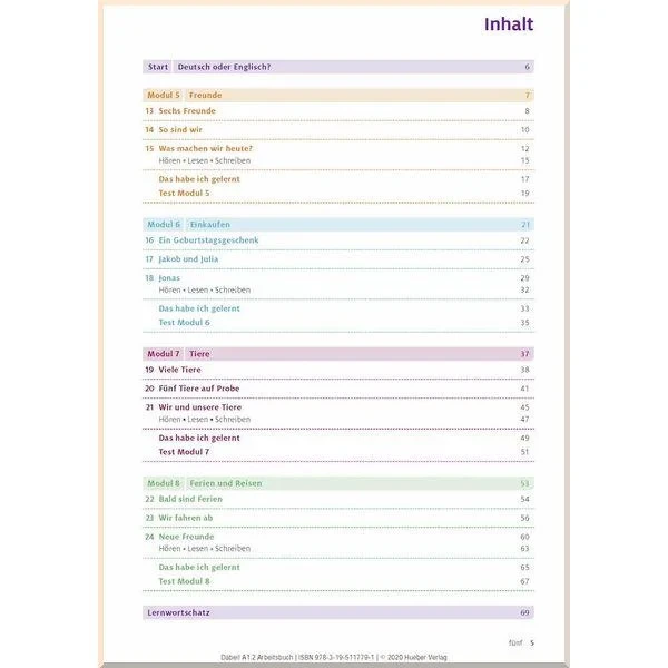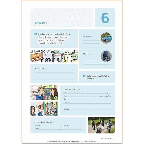 робочий зошит містить вправи з граматики, лексики та розмовної мови кожний модуль починається з вступної сторінки, де можна повторити все, що було вивчено раніше в кінці кожного модуля: дві сторінки для самостійного контролю прогресу навчання «Я навчився цьому», а також модульний тест зі спілкування, лексики та граматики як додаток – ілюстрований та контекстуалізований словник з найбільш поширеними словами з підручника інтегрована граматика для самостійного вивчення чисельні диференційовані вправи, що дозволяють самостійно контролювати прогрес навчання просте та наочне оформлення підручника з безліччю фотографій та ілюстрацій, а також сучасними типами текстів (наприклад, листування з чатів) зворотний зв’язок між вправами підручника та робочим зошити